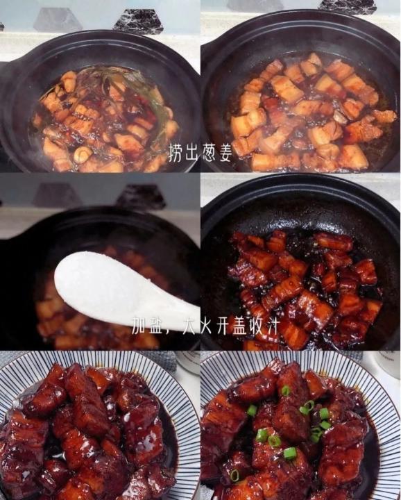 4.捞出葱姜,加入适量的盐,再大火开盖收汁,约10分钟。(这过程中需要不时翻炒一下,防止粘锅,剩一点汤汁就行了)